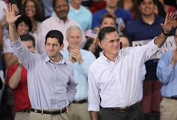 Republican presidential candidate Mitt Romney and vice presidential candidate Paul Ryan (L) greet supporters in Wisconsin.