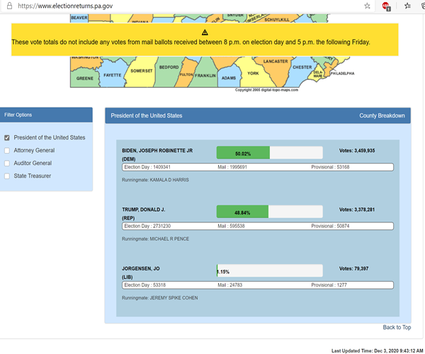 (Screenshot of a Pa. Dept. of State "Election Returns" Website page. Courtesy of the author).
