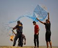It is as simple as it is effective. The flying fire kite is a kite outfitted with a Molotov cocktail as its stabilizer tail. The kite is launched into the air just like any regular kite would be. But then, the kite bursts into flames and turns into a ball of fire. When it hits its target, the wheat fields on the Israeli side of the border, the wheat fields are ignited and scorched.