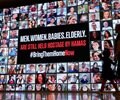 The billboard features a rotating carousel of images of the hostages, along with the message: "700 DAYS IN HELL."