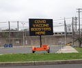 electronic road sign reads "COVID Boosters Here"