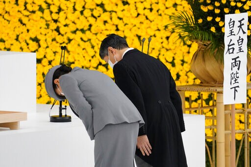 Emperor Naruhito, in contrast, expressed “deep remorse” over his country’s wartime actions in a carefully nuanced speech that followed the footsteps of his father, who devoted his 30-year career to making amends for a war fought in the name of Hirohito, the current emperor’s grandfather. Naruhito also said he hoped that people can put their hearts together to overcome the difficulty of the pandemic while seeking happiness and peace for all.