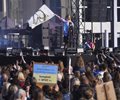 Gathering near the Brandenburg Gate, symbol of a divided Germany during the Cold War, many performers on the stage wore shades of blue and yellow, the colors of the flag. Musicians included Natalia Klitschko, a Ukrainian singer who is married to the mayor of Kyiv, Vitali Klitschko.