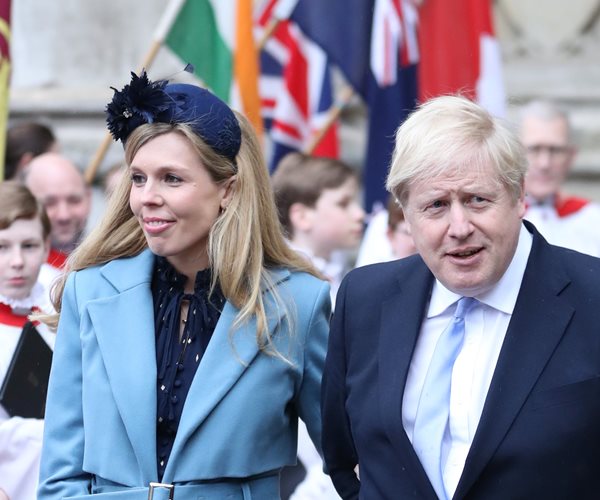 British Prime Minister Boris Johnson and fiancée Carrie Symonds depart the Commonwealth Day Service 2020 at Westminster Abbey in London on March 9.  (Chris Jackson/Getty Images)
