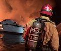 A woman who came to the harbor said, "My son was on that boat." She was led away by a Ventura County firefighter. Rochester said the 75-foot commercial scuba diving vessel was anchored in Platts Harbor, about 20 yards off the northern coast of Santa Cruz Island, when the fire ignited.