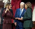 The exchange began with Harris leading Fischer, R-Neb., to recite the oath of office. The two women then shook hands, and Harris thanked the Nebraska lawmaker for all of her work.