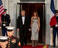 Video posted on Twitter showed the first lady, who wore a black sleeveless dress and her trademark stilettos, strolling into the East Room accompanied by President Donald Trump. He showed her to a front-row seat across the aisle from Vice President Mike Pence before heading to the microphone.
