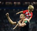 Mandzukic was mobbed by teammates, who jumped on him in the corner and trapped photographers under them in the crush.