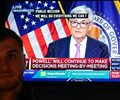 A television airs Federal Reserve Chairman Jerome Powell's press conference on the floor of the New York Stock Exchange as traders work June 14, 2023. (Seth Wenig/AP)