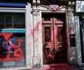 "Free Palestine" and other slogans were scrawled in red on the El Al entrance.