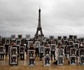 French environmental activists brandished stolen portraits of President Emmanuel Macron at a protest Sunday near the Eiffel Tower to try to push the government to do more to fight climate change.