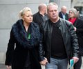 harry dunn's parents both in black coats walk outside holding hands