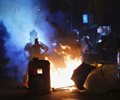 Riot police repeatedly fired blue liquid — used to identify protesters — from a water cannon truck and multiple volleys of tear gas after demonstrators hurled Molotov cocktails at officers and targeted the government office complex.