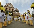 Devotees walk carrying pots on their heads to fill water from the Sabarmati River during the Jal Yatra procession ahead of the annual Rath Yatra or chariot procession of Hindu deity Lord Jagannath in Ahmadabad, India. (Ajit Solanki/AP)