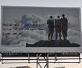 The billboard depicts three male soldiers standing atop a rocky hill, with a quote from a Persian poem superimposed over the image, BBC News reported.
