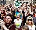 There were cheers when the vote tally was announced at Dublin Castle. More than 1,000 people gathered outside the castle, singing, chanting, and toasting one another with champagne as they waited for the official announcement.