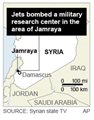 Syrian state television said two people were killed in a dawn raid on a military site at Jamraya, which lies in the 25-km (15-mile) strip between Damascus and the Lebanese border. It described it as a scientific research centers "aimed at raising the level of resistance and self-defense."