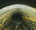A video taken by tiny drones sent into one of three damaged reactors at the Fukushima Daiichi nuclear power plant showed a gaping hole in the thick-walled steel container of the core, with lumps of likely melted fuel debris hanging from it, in a first sighting of a pressure vessel bottom since the meltdown 15 years ago.