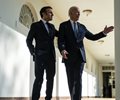President Joe Biden and French President Emmanuel Macron walk down the Colonnade to the Oval Office at the White House. (Doug Mills-Pool/Getty Images)