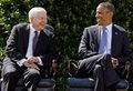 Former Secretary of Defense Robert Gates and President Barack Obama share a laugh during Gates' Armed Forces Farewell Tribute at the Pentagon on June 30, 2011. (Chip Somodevilla/Getty Images)