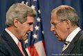U.S. Secretary of State John Kerry speaks with Russian Foreign Minister Sergey Lavrov, right, before a news conference in Geneva on Sept. 14, 2013. Philippe Desmazes/AFP/Getty Images)