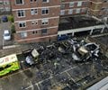 Multiple gas cylinders on the vehicles exploded, breaking windows in an adjacent apartment block. Nearby homes were evacuated as a precaution.