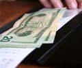 A note on the receipt reads: "A 4% service charge is added to each check so we may offer our staff health insurance. Please notify your server if you would like this removed. Thank you for dining with us!"