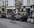 As he spoke, workmen in the upper-crust district of central Paris set about cleaning the defaced Arc, removing charred hulks of cars and replacing the shattered windows of banks, restaurants and glitzy boutiques.