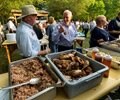 People fill their plates with barbecue chicken during a cookout held at Wayne Dasher's pond house in Glennville, Georgia. (Bill Clark/AP)