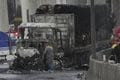 Images circulated online by authorities showed a mass of flames coming from a truck, while other videos on social media show dozens of people screaming and running from the explosion. The videos show two men whose entire bodies appeared to have suffered burns, with tattered clothing melded onto skin, as emergency vehicles sped by.