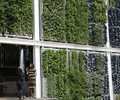 The pavilion featured a "vertical farm" — a facade of hydroponic planters growing more than 40 different crops — plus a programmable waterfall and a roof terrace covered by special glass that could turn opaque to block the summer sun.