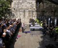 At midday, Israeli police opened two of the gates to the compound to allow worshippers to enter through the newly erected detectors. Police said some worshippers refused to go through them and knelt to pray outside instead. But despite concerns that the new measures could slow movement and spark renewed tensions, police said they appeared to be working fine and that 200 people had already passed through.