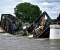 However, Stamey said there was no immediate danger for the crews working at the site, and the hazardous material was being diluted by the swollen river. There were eight rail cars in the river or on the part of the bridge that collapsed.