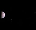 An image released Tuesday shows Jupiter surrounded by three of its four largest moons. The picture was taken on Saturday when the Juno spacecraft was circling 3 million miles away. Even at that distance, Jupiter's Great Red Spot — a centuries-old atmospheric storm — was visible.