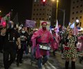 It's Saturday night in Jerusalem and a group of protesters dressed in fluorescent pink are preparing to join a weekly demonstration outside Israeli Prime Minister Benjamin Netanyahu's official residence demanding he quit.
