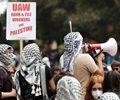 Students also wore stoles bearing the flag of Palestine, following a national trend of higher education protests against the war in Gaza.