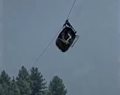 a broken cable car dangling