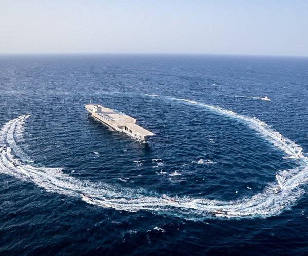 Other footage from the exercise aired by state television showed fast boats encircling the mock-up, kicking up white waves in their wake. While Iran's naval forces are dwarfed by the U.S. Navy, its commanders practice so-called “swarm” tactics aimed at overwhelming the U.S. carriers that pass through the strait on their way in and out of the Persian Gulf.