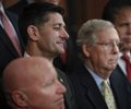 Speaker of the House Paul Ryan, middle, and Senate Majority Leader Mitch McConnell to his right. (Pablo Martinez Monsivais/AP)