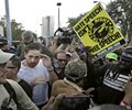 Fearing a repeat of clashes between far-right demonstrators and anti-fascist protesters, security was tight for Spencer's speech, with police flooding the streets and Florida governor Rick Scott declaring a state of emergency in the area.