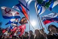 Pro-Kremlin activists wave Russian and Soviet naval flags and military ribbons during a rally in central Moscow on March 10, 2014. (Dmitry SerebryakovAFP/Getty Images)