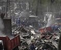 Rescue workers with flashlights scoured the charred rubble of partly collapsed homes as the blue lights of emergency vehicles lit up the dark city streets.