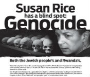 "Ms. Rice may be blind to the issue of genocide, but should treat our ally with at least as much diplomatic courtesy as she does the committed enemy of both our nations," the Times advertisement said.