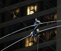 Their latest daredevil stunt was streamed live Sunday on ABC. They were wearing tethered safety harnesses required by the city in case they fell.