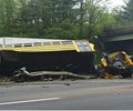 The crash left the bus lying on its side on the guardrail of Interstate 80 in Mount Olive, its undercarriage and front end sheared off and its steering wheel exposed. Some of the victims crawled out of the emergency exit in the back and an escape hatch on the roof. More than 40 people were taken to area hospitals.