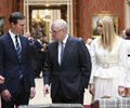 Donald Trump Jr. posted on Instagram a photo of himself in white tie before Monday's state dinner. His brother, Eric Trump, was part of the family's Tuesday tour of the underground Churchill War Rooms and lingered over the chair from which the prime minister oversaw World War II. And Ivanka Trump, who doubles as a senior White House official, spent the day before her father's arrival touring some of London's art museums and then took her place by his side for a trade meeting Tuesday with Prime Minister Theresa May.