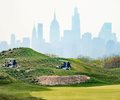 Golfers play the links with the Manhattan skyline in the distance at Trump Golf Links at Ferry Point in the Bronx borough of New York. (AP)