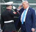 President Donald Trump, right, salutes as he arrives on Marine One before boarding Air Force One at Joint Base Andrews, Md., March 28, 2025, en route to Florida for the weekend. (Jacquelyn Martin/AP)