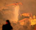 Helicopters made repeated water drops as crews in Los Angeles attacked flames in and around homes. Water- and retardant-dropping airplanes joined the battle after daybreak. About 1,000 firefighters were on the lines.