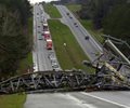 Televised broadcast news footage showed smashed buildings with rooftops blown away, cars overturned and debris everywhere. Trees all around had been snapped bare of branches.